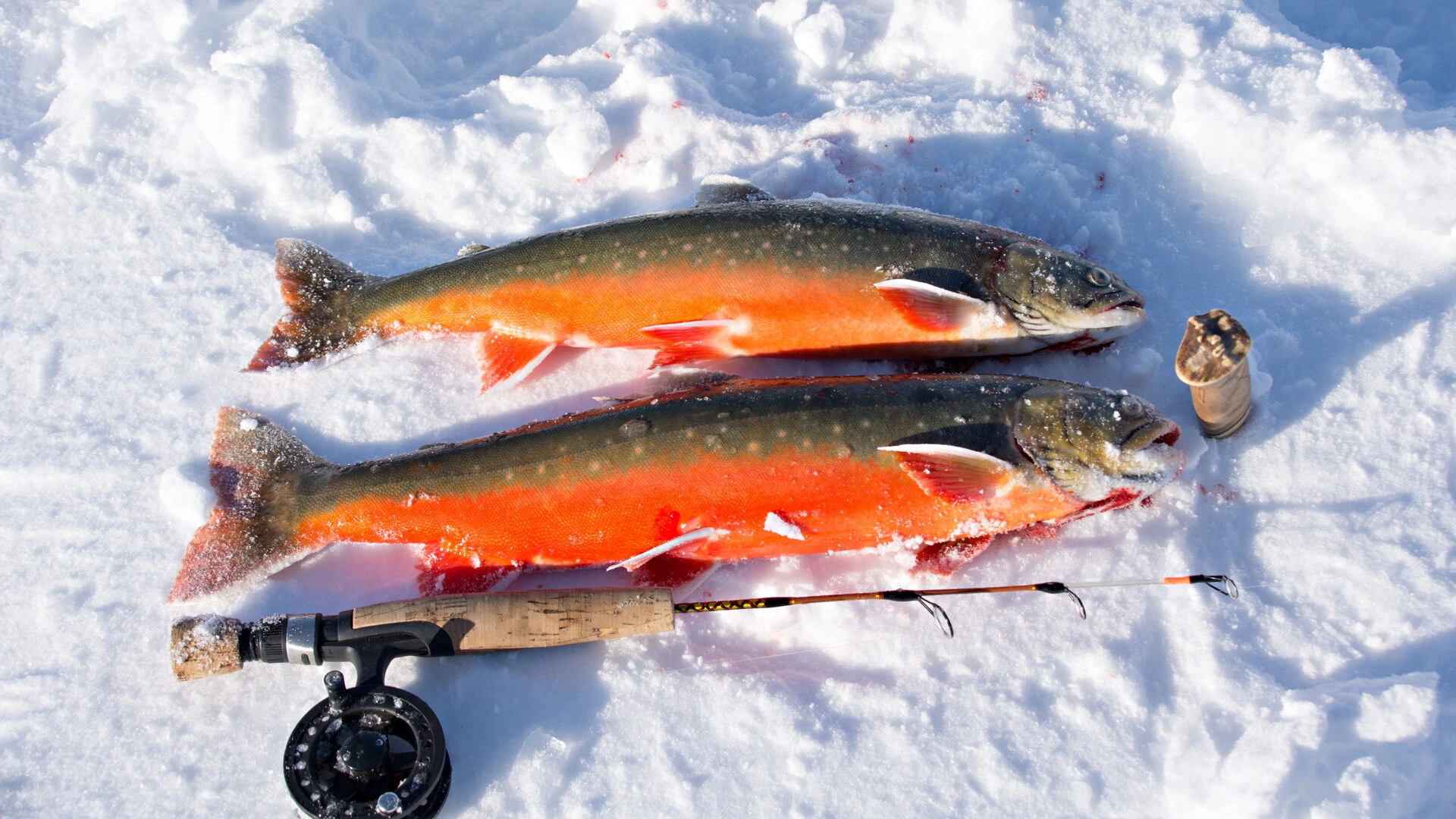 Kalastukseen liittyvä välineistöä löytyy tarvittaessa oppaalta (vapoja, rautupilkkejä, morreja, moottorikairat)